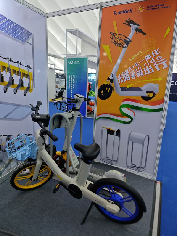 在深圳市钜力能科技有限公司的展位上,光伏板驱动的共享电单车和电动滑板车十分引人注目。“我们公司是2010年在龙岗创立成长的企业,主要创新是将光伏发电+储能系统+无线充电+移动出行结合起来,形成一个零碳清洁能源的生态系统。目前国内外客户各占50%,未来还会继续拓展海外市场,让来自龙岗的低碳出行方案惠及更多国家。”企业负责人李先生说。