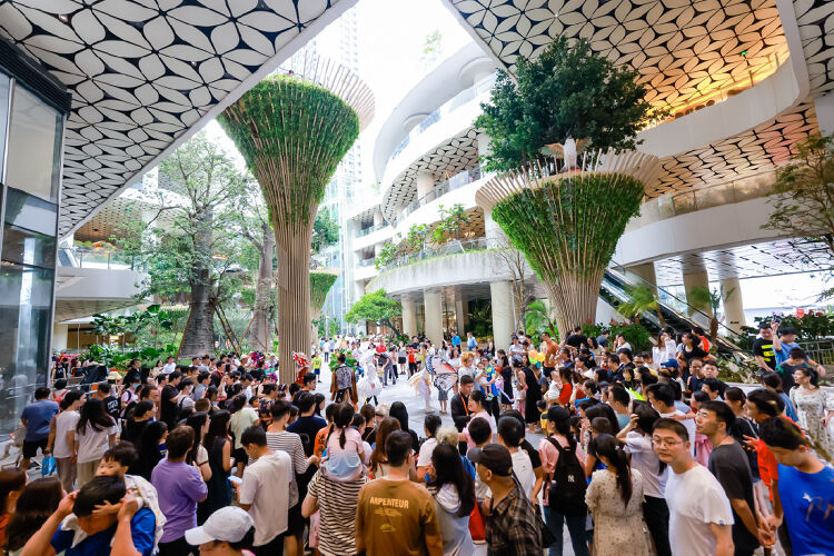 2月冬意未消时,“见龙在田闹元宵”坂田手造文化街元宵嘉年华吸引10万游客打卡消费;3月春日万物复苏时,以“美好生活流淌起来”为主题的深圳龙岗美好生活节在坂田星河WORLD·COCO Park拉开帷幕;5月盛夏蝉鸣时,坂田乐荟广场人声鼎沸,“乐π市集”的英歌表演、汉服巡游与美食汇聚一堂,让居民游客尽享城市烟火气;8月金秋初至,龙岗购物季璀璨星光嘉年华主题活动又在星河WORLD·COCO Park启动,聚焦暑期消费、文娱旅游,掀起全区消费热潮;10月暖秋,坂田万科广场盛大开业,“十一”假期前3天客流就达到了33万人次;深秋“深圳式YOUNG”沸点之夜又HIGH翻双子塔……