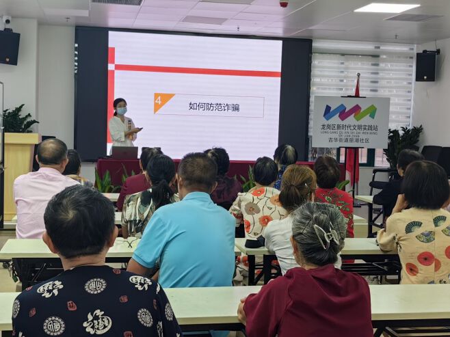 除了开展线上普法宣传,龙岗区司法局还组织各街道、各社区的“法律明白人”、法律顾问和普法志愿者深入社区,积极开展线下防诈骗宣传活动,为老年人群体送上“平安法治礼包”。通过剖析“投资理财”“以房养老”“养生保健”和“低价旅游”等常见诈骗案例,以生动的实例向老年人揭露诈骗的惯用手法、作案方式和犯罪特征,提醒老年人提高警惕,不轻信陌生人承诺,遇事多与家人沟通商量。