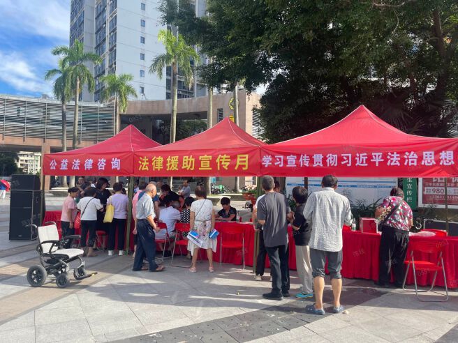 龙岗区司法局结合“法律援助宣传月”活动部署,组织各街道通过法律咨询、法治讲座和法律知识有奖问答等形式,广泛宣传法律援助法、老年人权益保障法和民法典等相关法律法规。现场工作人员耐心地向老年群众讲解申请法律援助的条件、程序和援助范围等内容,提高其知晓率,并引导老年人正确运用法律援助手段,维护自身的合法权益。