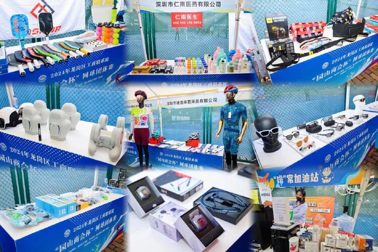 记者在现场看到,赛场外的展示区还陈列着各种各样与体育相关的优质产品,这些产品都来自龙岗园山辖区优秀的体育产业相关企业。大家在欣赏精彩网球比赛的同时,也能在产品展示区发现心仪的体育好物,感受龙岗体育产业的魅力和活力。据介绍,本次比赛所有奖品以及参赛随手礼均由园山街道商会会员企业倾情赞助。