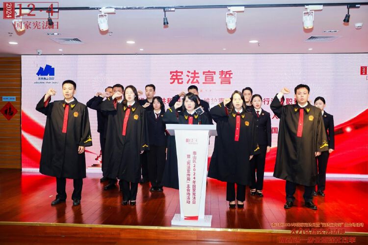 “我宣誓,忠于《中华人民共和国宪法》,维护宪法权威,履行法定职责,忠于祖国、忠于人民,恪尽职守、廉洁奉公,接受人民监督......”活动现场,南山公安分局、南山区人民检察院、南山区人民法院干警代表参加宪法宣誓仪式,铮铮誓言,不由得让人心潮澎湃、肃然起敬。此外,法官们表演的音乐快板《说宪法》、原创歌曲《尚法歌》,余音绕梁,久久让人回味......