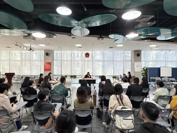 讲座结束后,南山法院知识产权庭副庭长杨睿公开审理了一起服装领域的著作权侵权纠纷案件。庭审中,经过原、被告举证、质证、辩论,法官逐步厘清法律关系、查明案件事实,随后法庭宣布将择日宣判。
