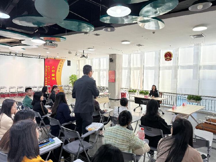 随后,南山法院西丽人民法庭庭长黄娟敏以金文“灋”字为引子,介绍了法庭内部设置、法袍法徽意义等法庭常识,并结合真实案例,以通俗易懂的语言讲解了法律在日常生活中的重要性。