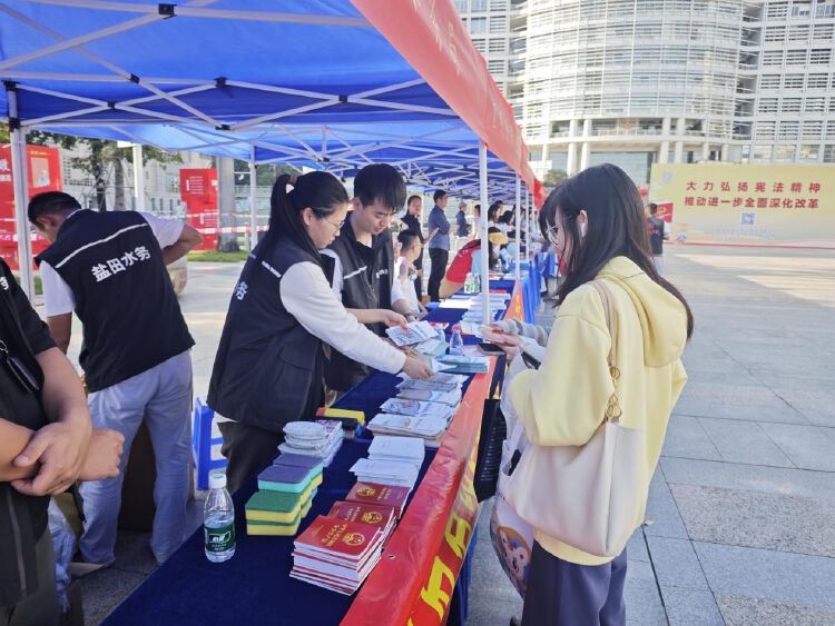 活动期间,盐田区水务局通过设立宣传咨询台、发放宣传资料、悬挂宣传标语、现场讲解、开设趣味游园互动游戏等方式,对往来市民群众开展《中华人民共和国宪法》以及《深圳经济特区水资源管理条例》《深圳经济特区城市供水用水条例》等涉水法律知识宣传及答疑,将法治元素涵盖其中,在游戏中学习法律知识,让宪法知识和法治精神深入人心。
