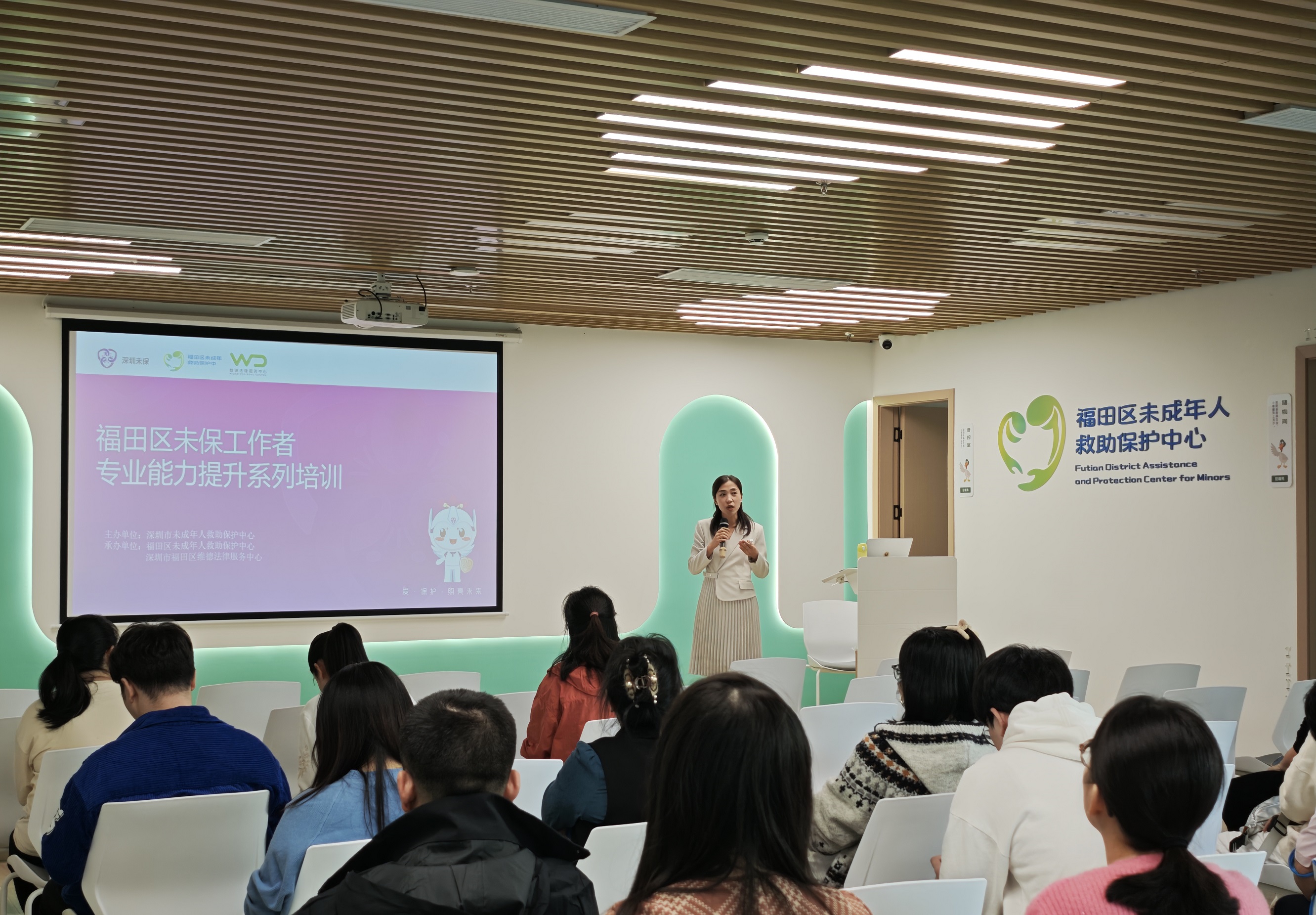 为进一步推进福田区儿童保护工作队伍建设,提升基层未保工作者业务水平,12月11日,由2024年深圳市儿童关爱服务项目资助的以临时监护为核心的基层未成年人救助保护中心服务模式探索项目,面向福田区各街道儿童督导员、社区儿童主任开展《中华人民共和国家庭教育促进法》解读主题培训活动。活动分两场进行,现场近80人参与。