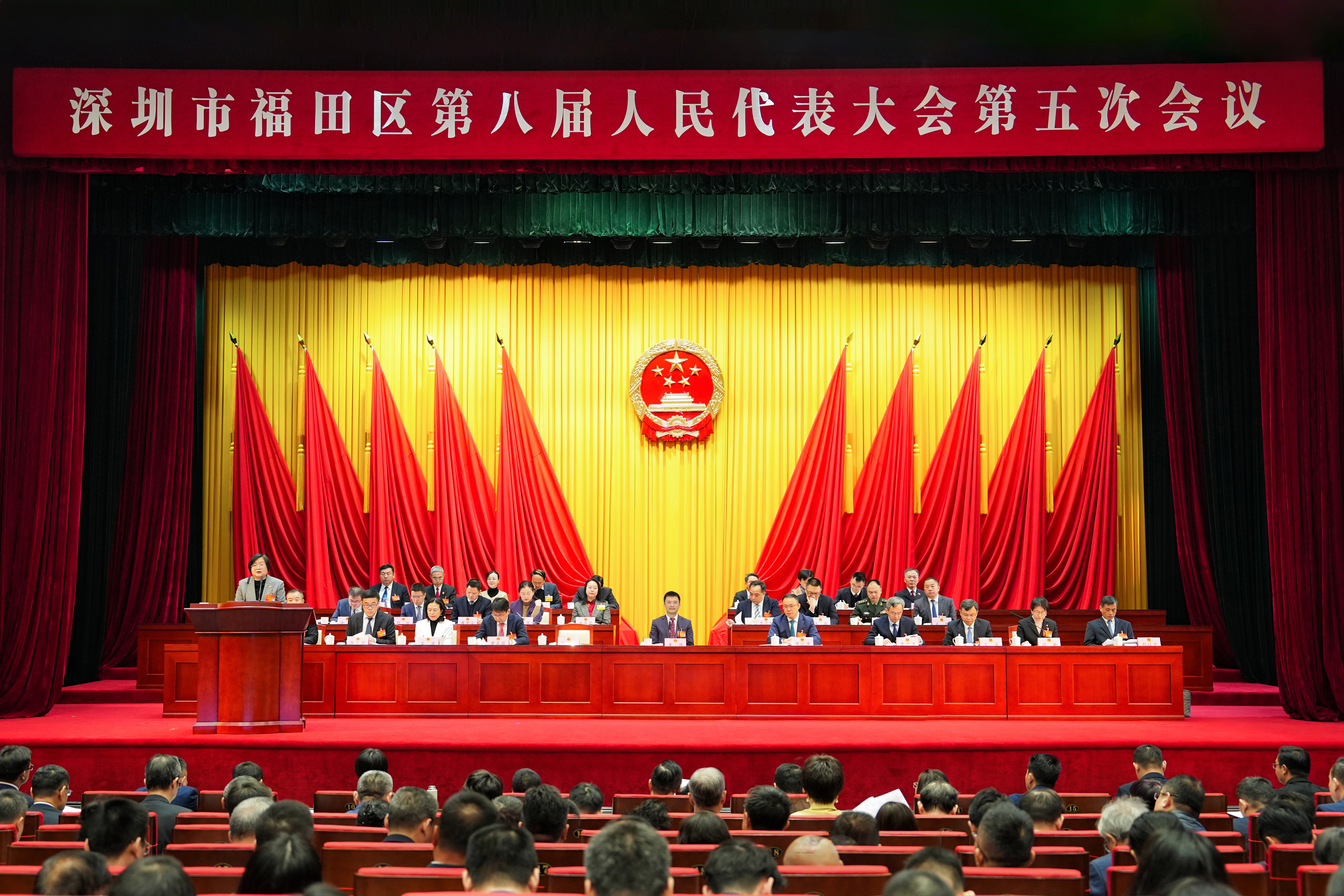 决战决胜“十四五”,“二次创业”开新局。1月10日下午,深圳市福田区八届人大五次会议圆满完成各项议程,胜利闭幕。会议表决通过了关于福田区人民政府工作报告的决议、关于福田区2024年国民经济和社会发展计划执行情况与2025年计划的决议、关于福田区2024年预算执行情况和2025年预算报告的决议、关于福田区人大常委会工作报告的决议、关于福田区人民法院工作报告的决议、关于福田区人民检察院工作报告的决议。福田区委书记黄伟,区委副书记、区长周江涛,区人大常委会主任马宏,区政协主席李世清等出席。