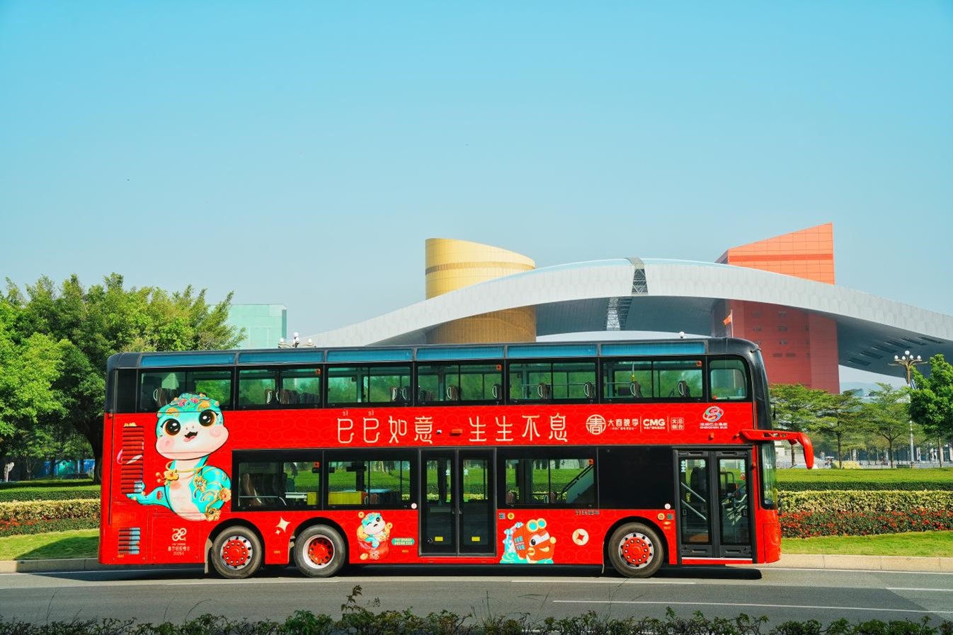 福田•节日广场花市再添双星闪耀!央视春晚蛇年吉祥物“巳升升”萌动登场,以其憨态古韵,瞬间聚焦万众瞩目;同时,本次花市独家引入央视春晚吉祥物“巳升升”,以经典“红胖子”双层巴士为原型打造的新春主题巴士,也将首发亮相在福田•节日广场花市现场,成为市民游客“逛花市、行花街”的热门打卡点。更有“巳升升”精美文创首发首展——深圳唯一官方授权“巳升升”系列文创产品发售专场,将带来如意春碗、福满四季摆盘、巳巳如意风车、冰箱贴、书签等新年文创好物,为福田•节日广场花市添上一抹独特的文化韵味与欢庆气息。