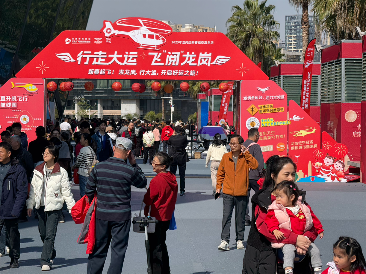大年初一至初三,龙岗大运中心化身为“低空互动嘉年华”的主场,直升机飞行观光、无人机竞速、VR穿梭机体验等科技感十足的活动,不仅让市民和游客在传统年味中感受到了“未来感”,更通过场景创新激活了消费新动能。
