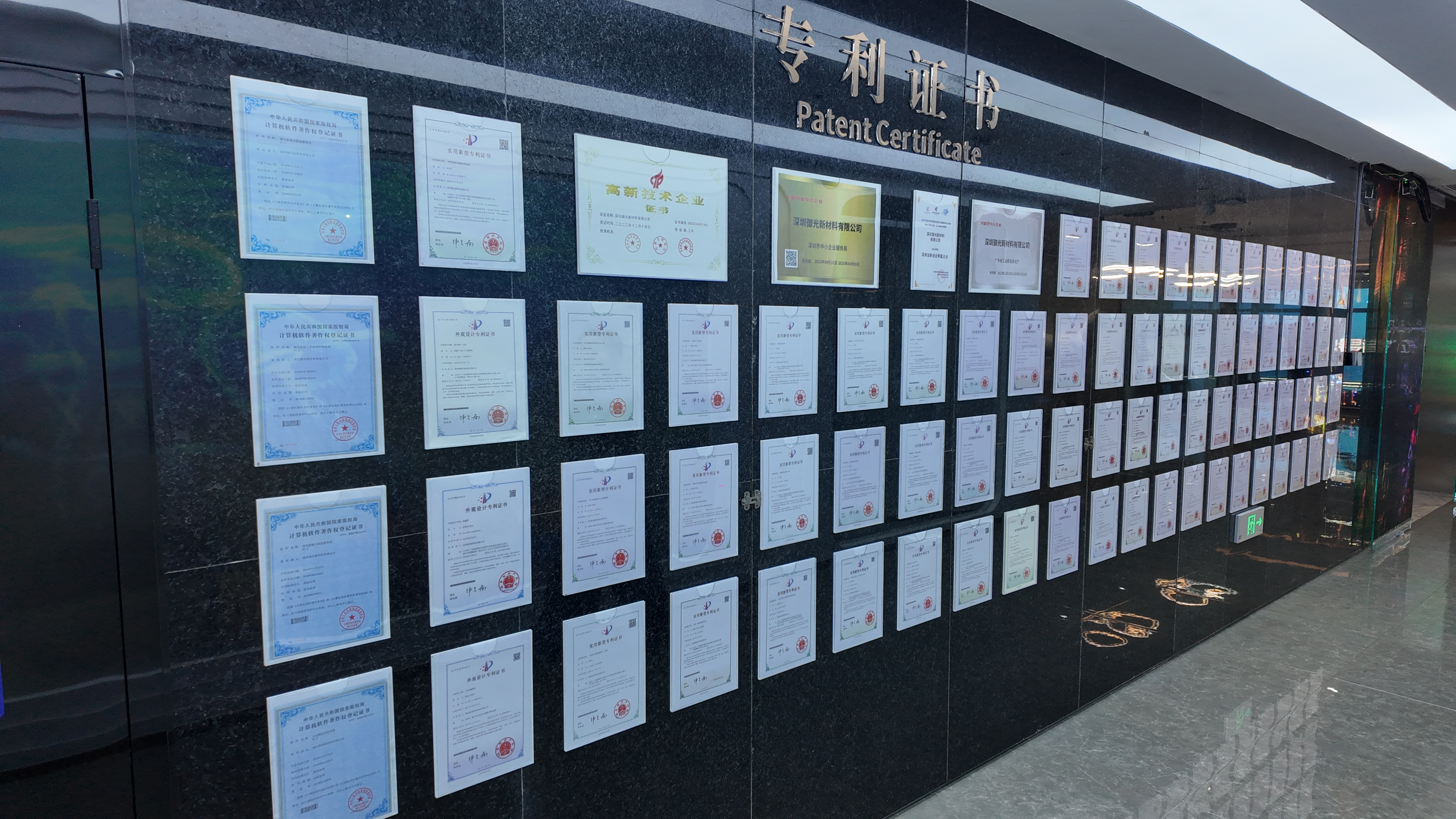目前,御光新材料手握150多项发明专利和实用新型专利,是全球唯一一家将建筑、显示、能源三大产业技术完美融合的创新型企业。该公司产品在国内外享有盛誉,获得了中国CCC、美国UL、日本PSE、欧盟CE、中东CB以及RoHS、FCC等权威认证,目前在德国、巴西、韩国、迪拜等地建立了联合生产基地。