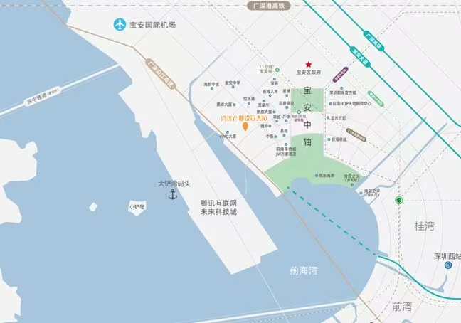 打开地图不难发现,沿着前海宝安中心区海岸线,方圆5公里内,已形成独具特色的人工智能关键技术平台集群——华为云具身智能创新中心、腾讯新总部、灵巧手产业园、大湾区工业互联网公共服务平台等在此汇聚。