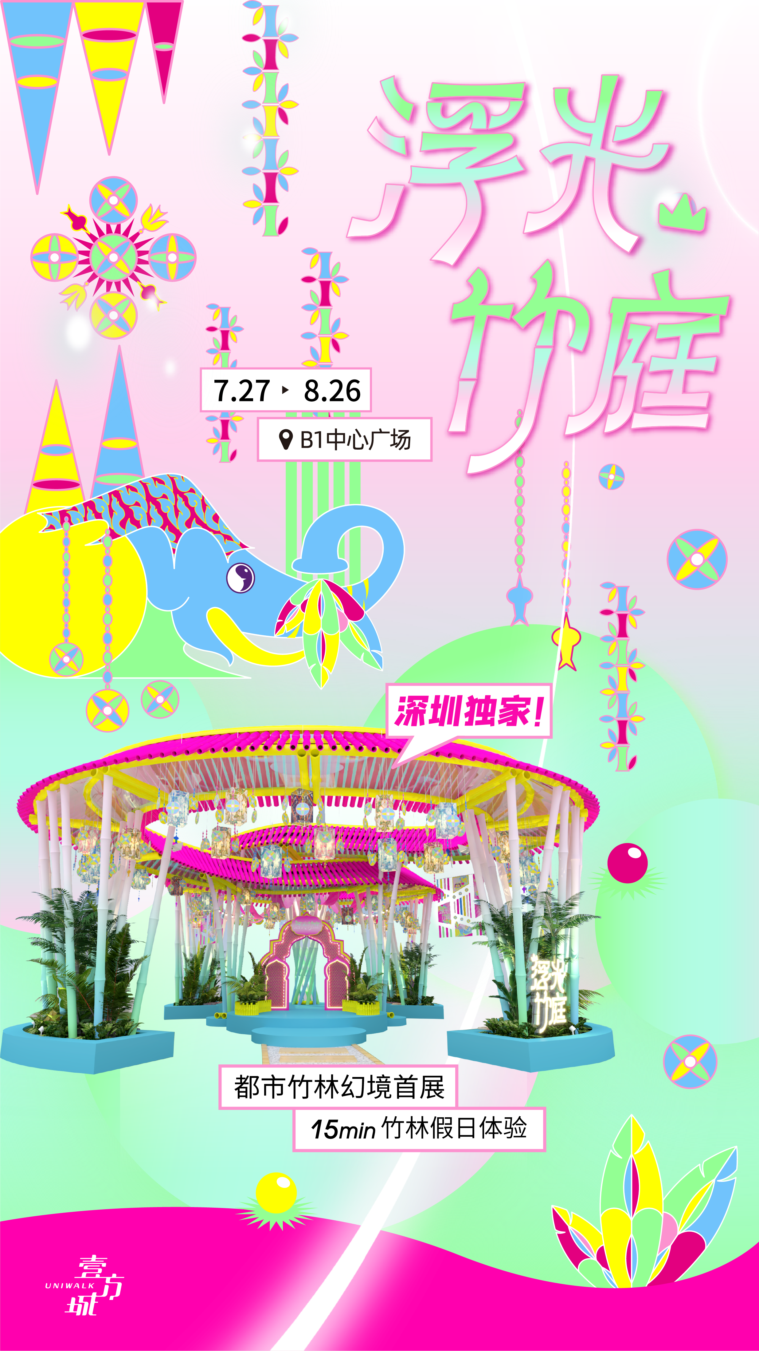 去前海壹方城感受东南亚风情!近日,深圳首个东南亚竹林主题“浮光竹庭”在前海壹方城正式对外开放。这座融合热带风情与艺术巧思的沉浸式空间,以玫红、蓝粉渐变、粉绿渐变为主色调,通过数百根竹子构建出“城市雨林”秘境,为市民带来耳目一新的休闲体验。
