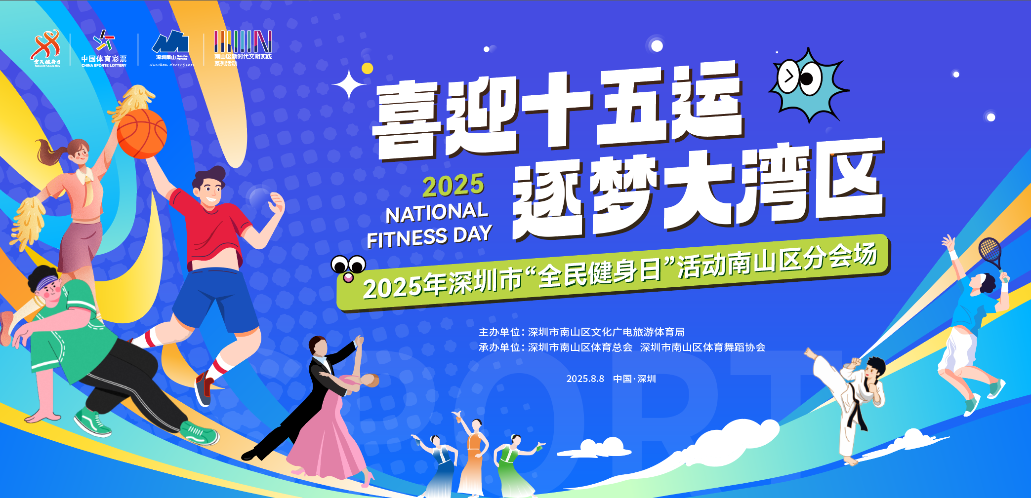 除体育场馆惠民开放之外,8月8日当天,南山区还将在蛇口文体公园举办2025年深圳市“全民健身日”活动南山区分会场活动,以“喜迎十五运·逐梦大湾区”为主题,现场不仅有啦啦操、体育舞蹈、跆拳道、花式篮球、健身广场舞、柔力球、街舞等精彩纷呈的体育项目展演,还特别打造“喜迎十五运·逐梦大湾区”主题互动体验区。