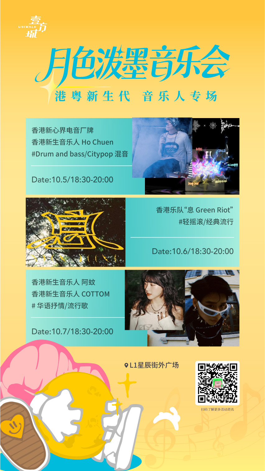 中秋节,这里又将切换成“浪漫模式”,为期三天的“月色泼墨音乐会”在此上演。电音、摇滚、民谣、流行……来自深港两地的音乐人,将为大家带来一场浪漫的“月下音乐之约”。