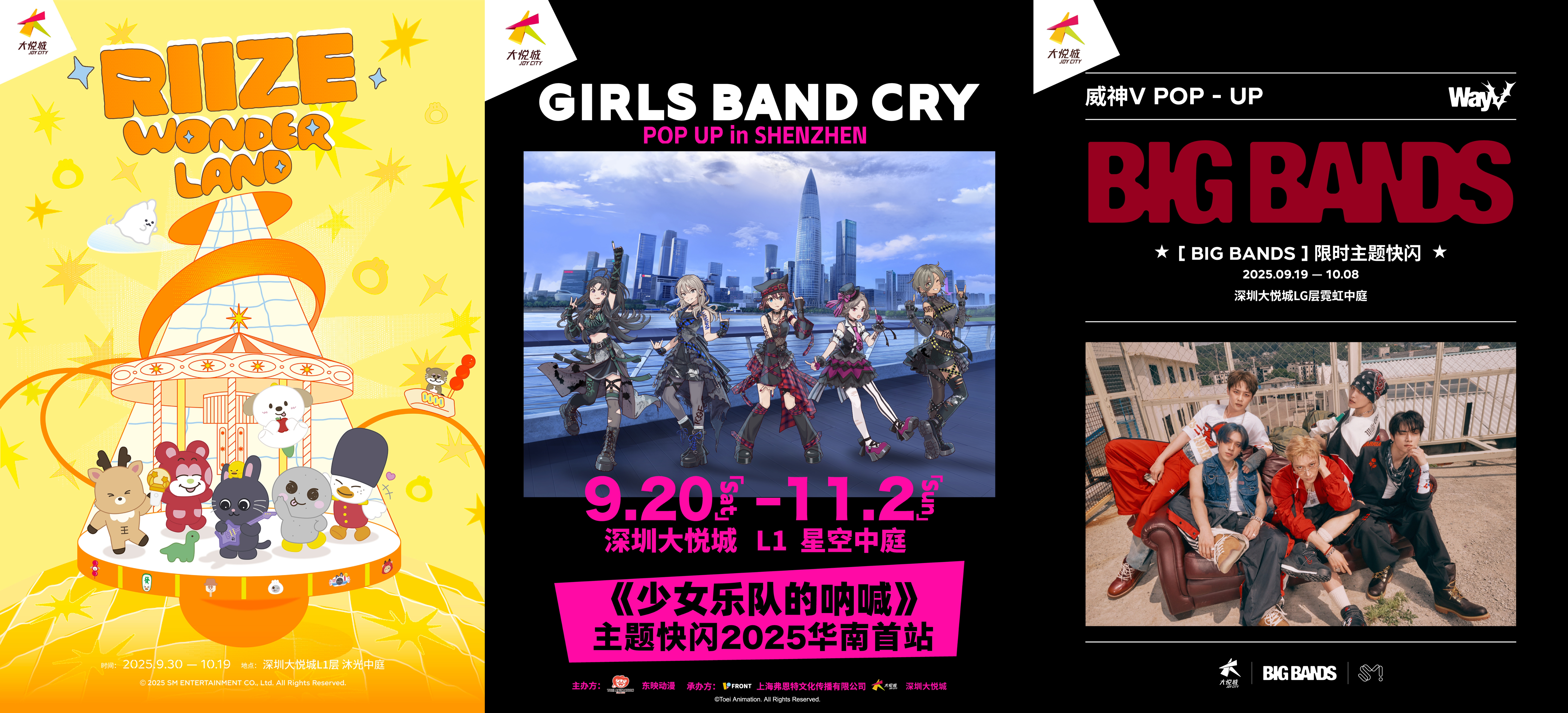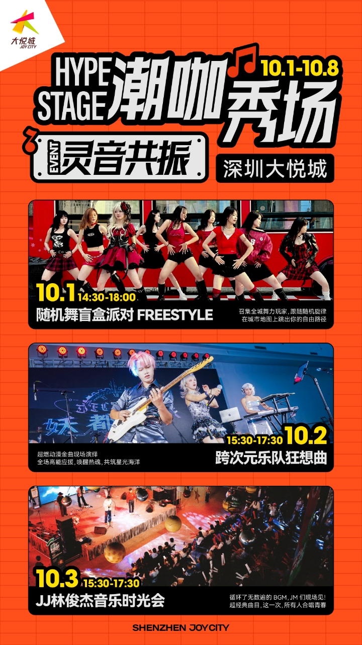 作为一座定位青年潮流的商业综合体,大悦城在“十一”假期以“潮咖秀场”为主题,将举办《少女乐队的呐喊》主题快闪、威神V BIG BANDS限时主题快闪和RIIZE WONDERLAND POP-UP三大特发首展,以及随舞盲盒派对、动漫乐队live、JJ林俊杰音乐时光会等主题活动,不管你是粉丝还是二次元爱好者,都能在这里找到你的同好!
