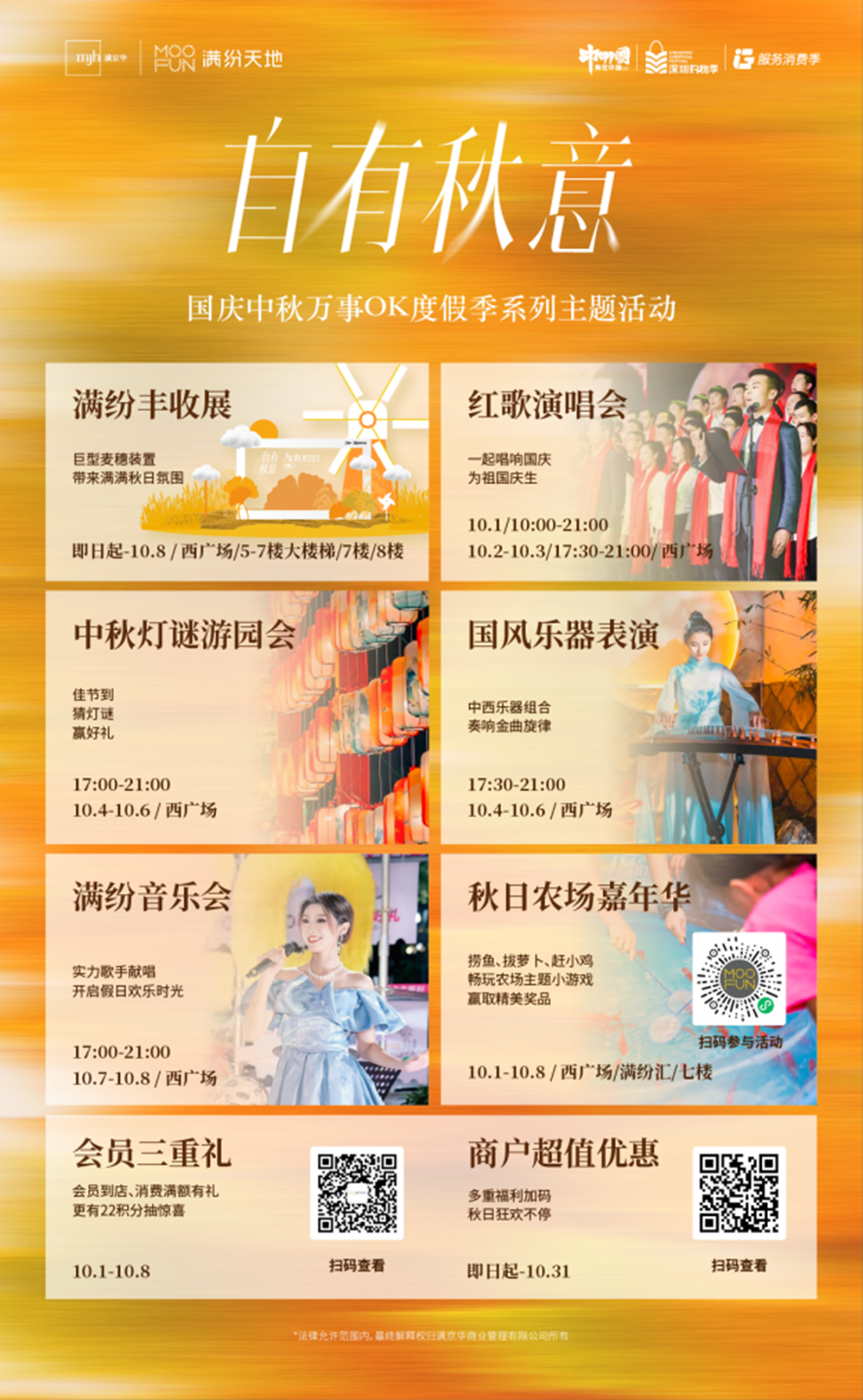 除了精美的秋日打卡点,满纷天地西广场与7楼还将推出 “秋日农场嘉年华”,专为亲子家庭打造“捞鱼小游戏”、“快乐拔萝卜”、“赶小鸡” 等互动小游戏,家长可以与孩子一同来一场充满欢声笑语的亲子游。