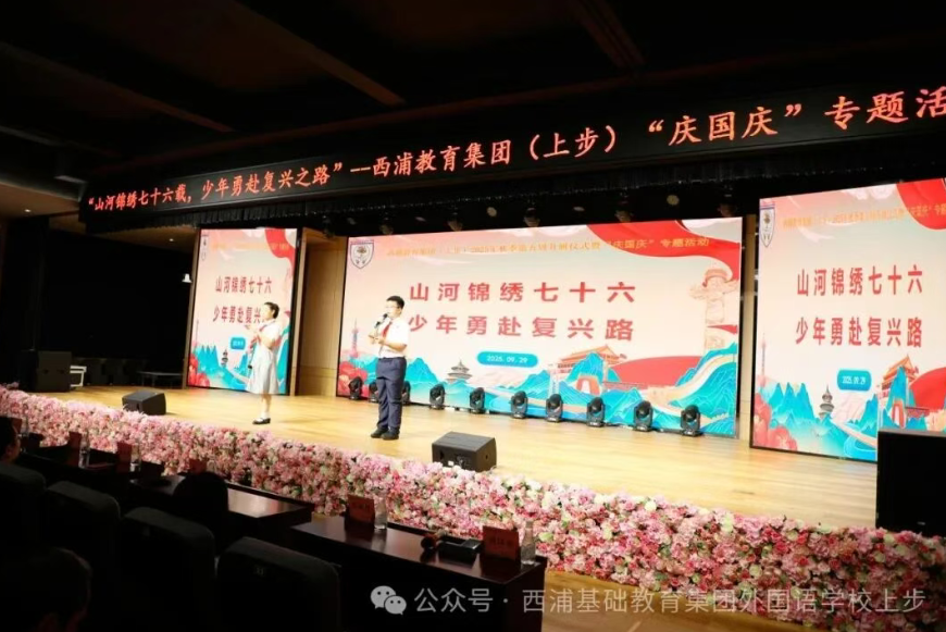 近日,西浦教育集团(上步)举行“山河锦绣七十六,少年勇赴复兴路”国庆主题升旗仪式。全体师生齐聚一堂,以昂扬的姿态、饱满的热情,共同致敬伟大祖国,激扬爱国情怀。