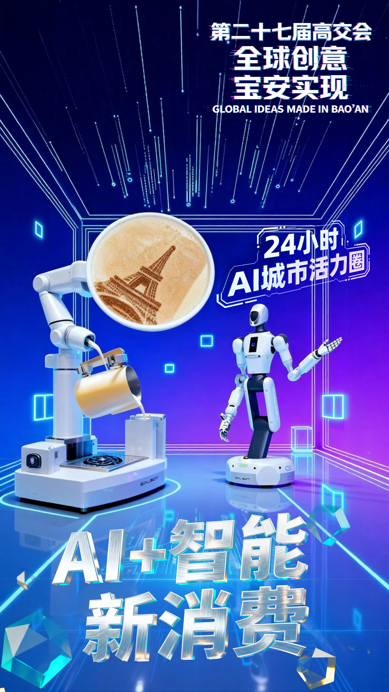当AI融入产业肌理,当创意落地为城市生活实景,第二十七届高交会上,宝安以“AI双圈”为叙事脉络,生动诠释了“全球创意,宝安实现”的核心理念。