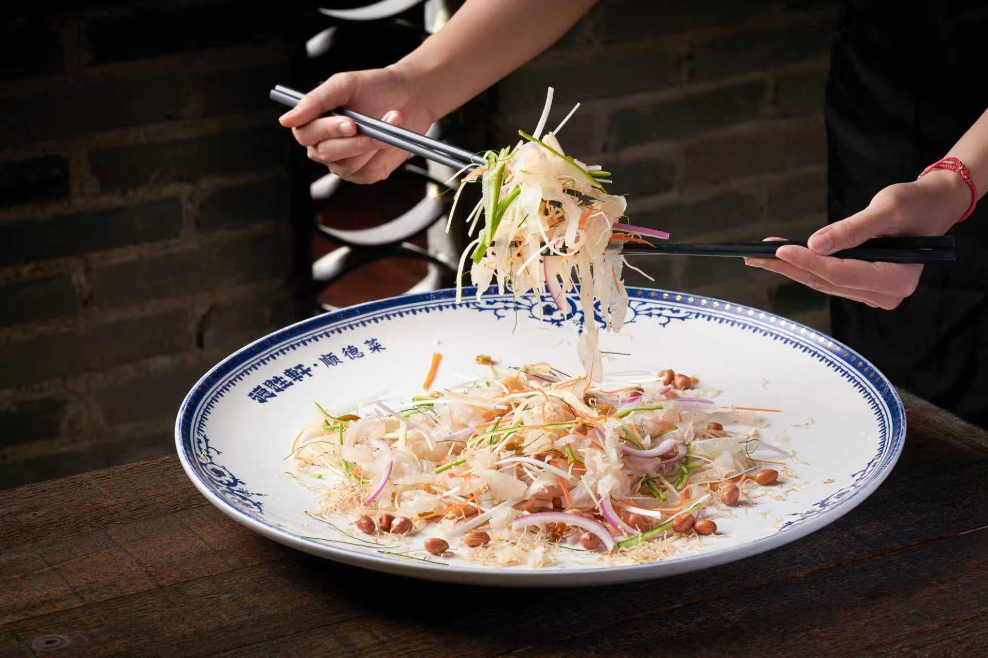 顺德鱼生是顺德美食的“名片”,薄如蝉翼的鱼片,搭配多种清爽佐料捞起,入口鲜甜爽滑,寓意风生水起!