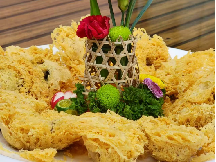 顺德鱼生更是考验师傅功力的招牌,新鲜鱼获现切现吃,鱼片薄如蝉翼,搭配十几种配料,清爽回甘的口感,将顺德菜的精致与鲜美展现得淋漓尽致。