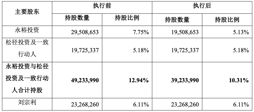 2024年8月19日,永裕投资与深圳松径投资合伙企业(有限合伙)签署了《一致行动协议》,松径投资与永裕投资为一致行动人。截至本公告披露日,松径投资及其一致行动人持有公司股份19,725,337股,占公司总股本的5.18%。永裕投资与松径投资及其一致行动人合计持股49,233,990股,占公司总股本的12.94%。