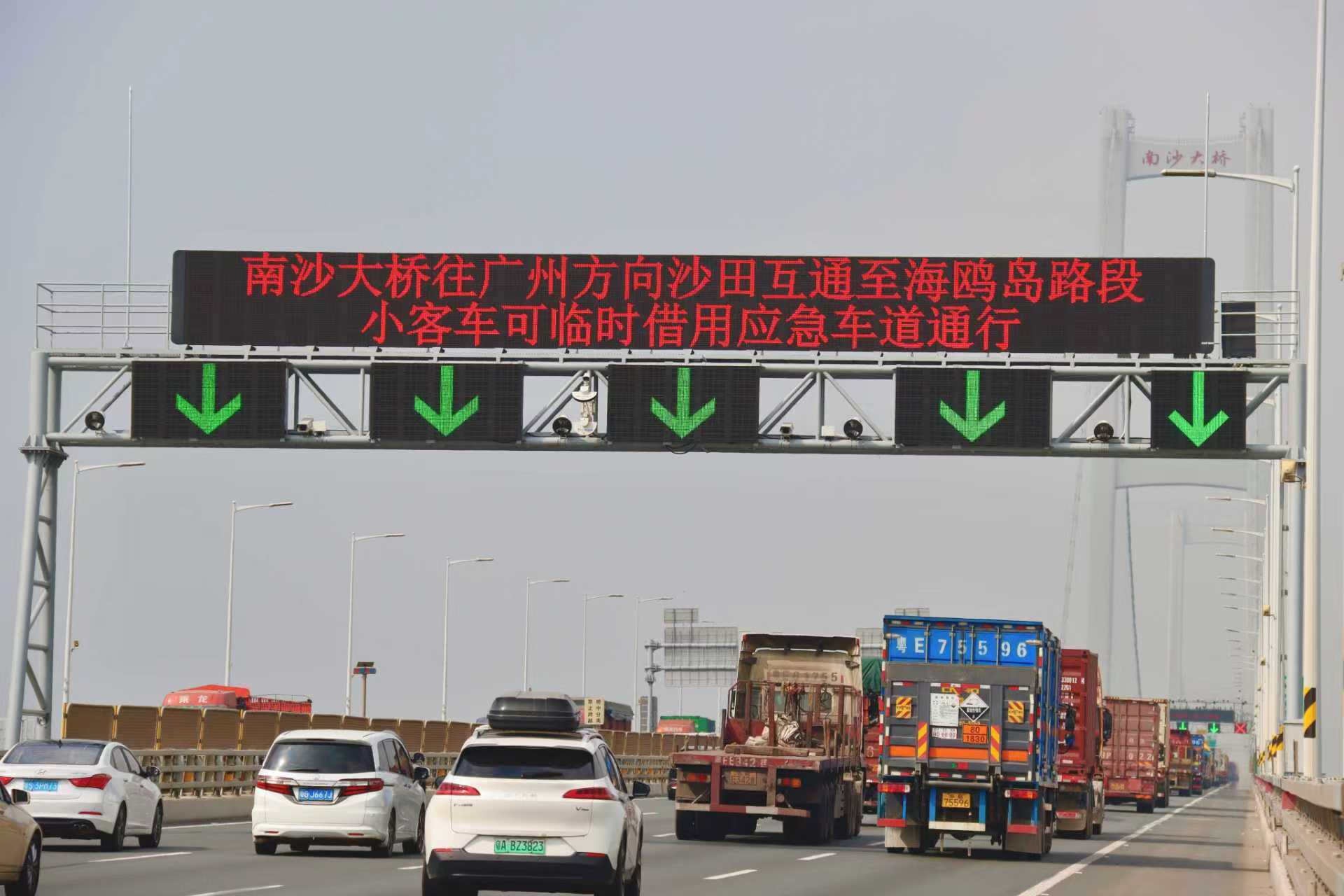 此次主动交通流管控系统新增恶劣气象智能应对、危化品车辆精准管控、中分带可变情报板提供动态信息、全域协同联动四大核心功能模块。其中,危化品车辆精准管控模块能针对南沙大桥日均2200余辆危运车的通行风险,系统强化车辆监测与轨迹追溯,提升特殊车辆管控精准度与应急响应速度;全域协同联动功能模块能打破跨地区、跨部门数据壁垒,进一步强化与相关所属路段的联动机制。此外,该系统还增加了空气质量实时监测功能,量化评估环保低碳成效,为高速公路绿色运营提供数据支撑。