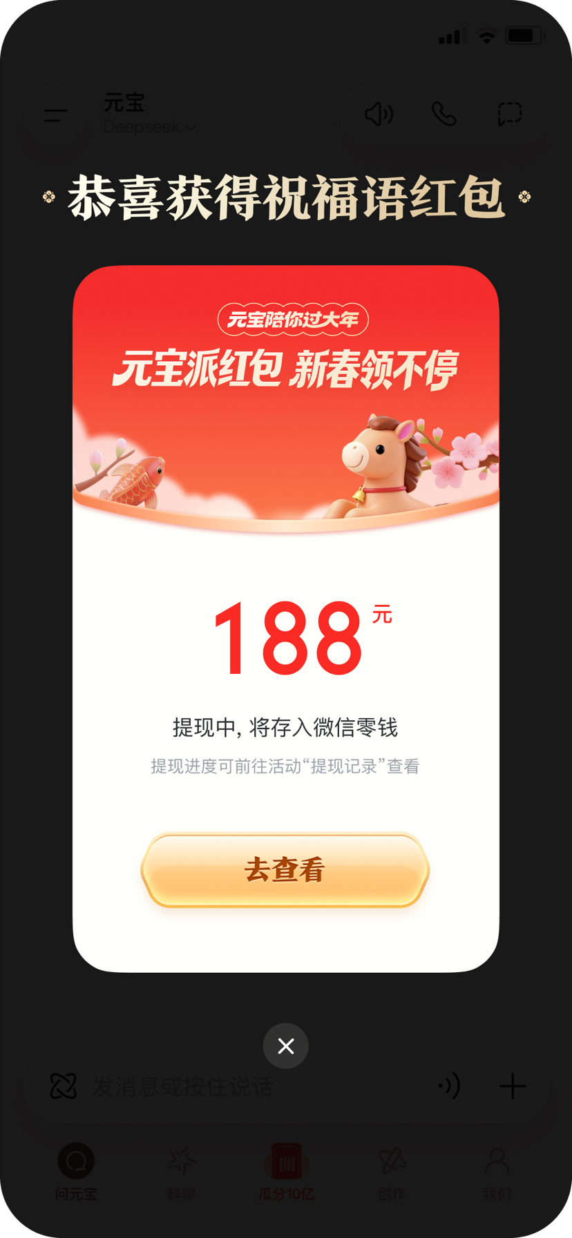 腾讯也于当天凌晨公布了抢10亿红包的官方攻略,用户将元宝App更新到2.55.0版本以上,进入首页点击底部「抢10亿」,即可进入新春活动主会场。活动从2月1日持续到2月17日,包含“主会场抽红包”和“祝福语红包”两大核心玩法,用户最高可领万元现金红包。