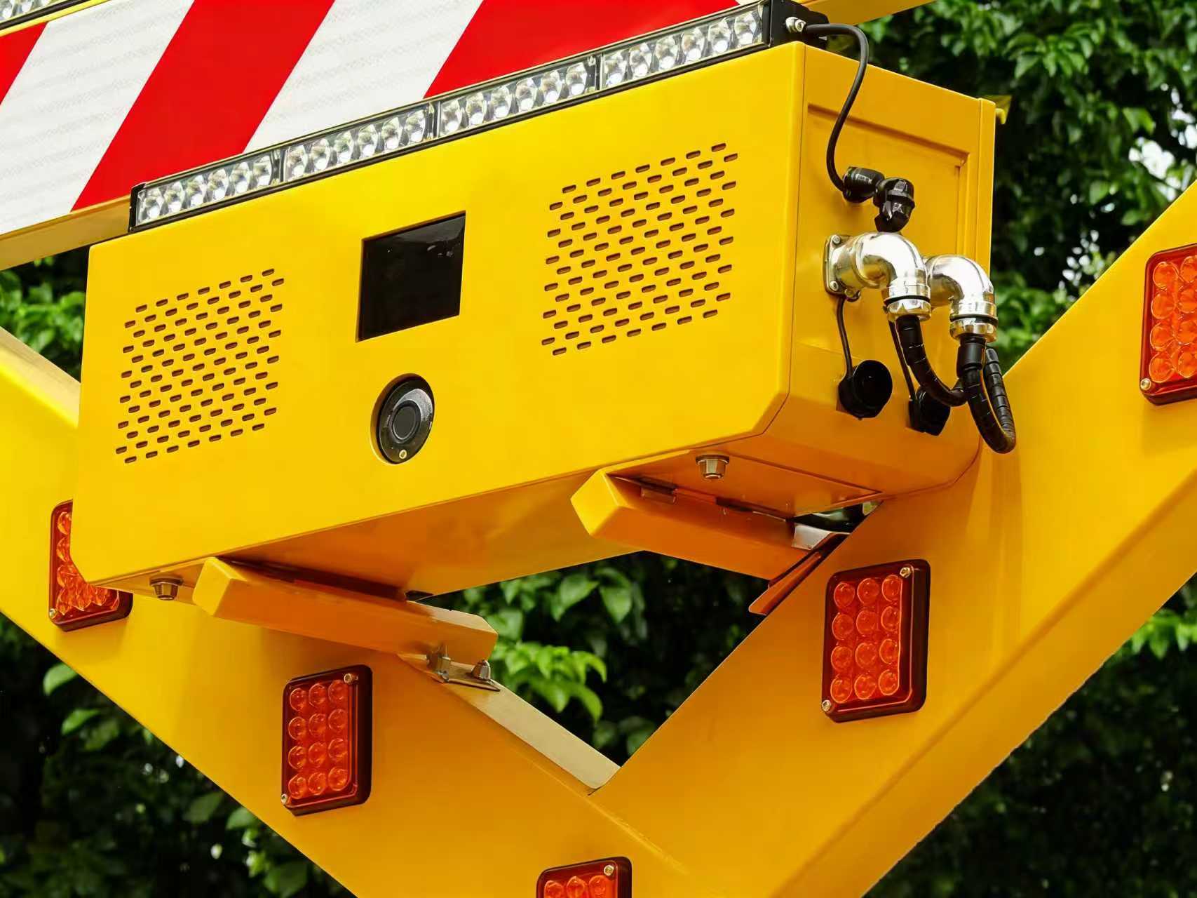 若碰撞仍不可避免,车尾的防撞缓冲模块便成为最后一道防线。该模块由缓冲垫与翻转机构组成,可在作业时快速展开,有效吸收追尾冲击能量,显著降低撞击力,在保护前方路政人员的同时,也减轻后车司乘的伤亡风险,实现双向安全防护。