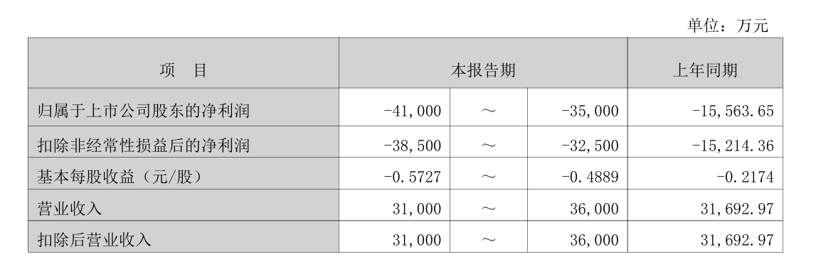 日前,北京文化(000802)披露的公告显示,该公司预计2025年实现营收3.1亿元至3.6亿元,上年同期为3.17亿元;预计归属于上市公司股东的净利润为-4.1亿元至-3.5亿元,上年同期为-1.56亿元。
