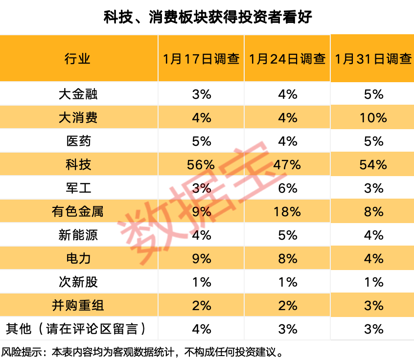 下周科技和消费板块获得投资者看好