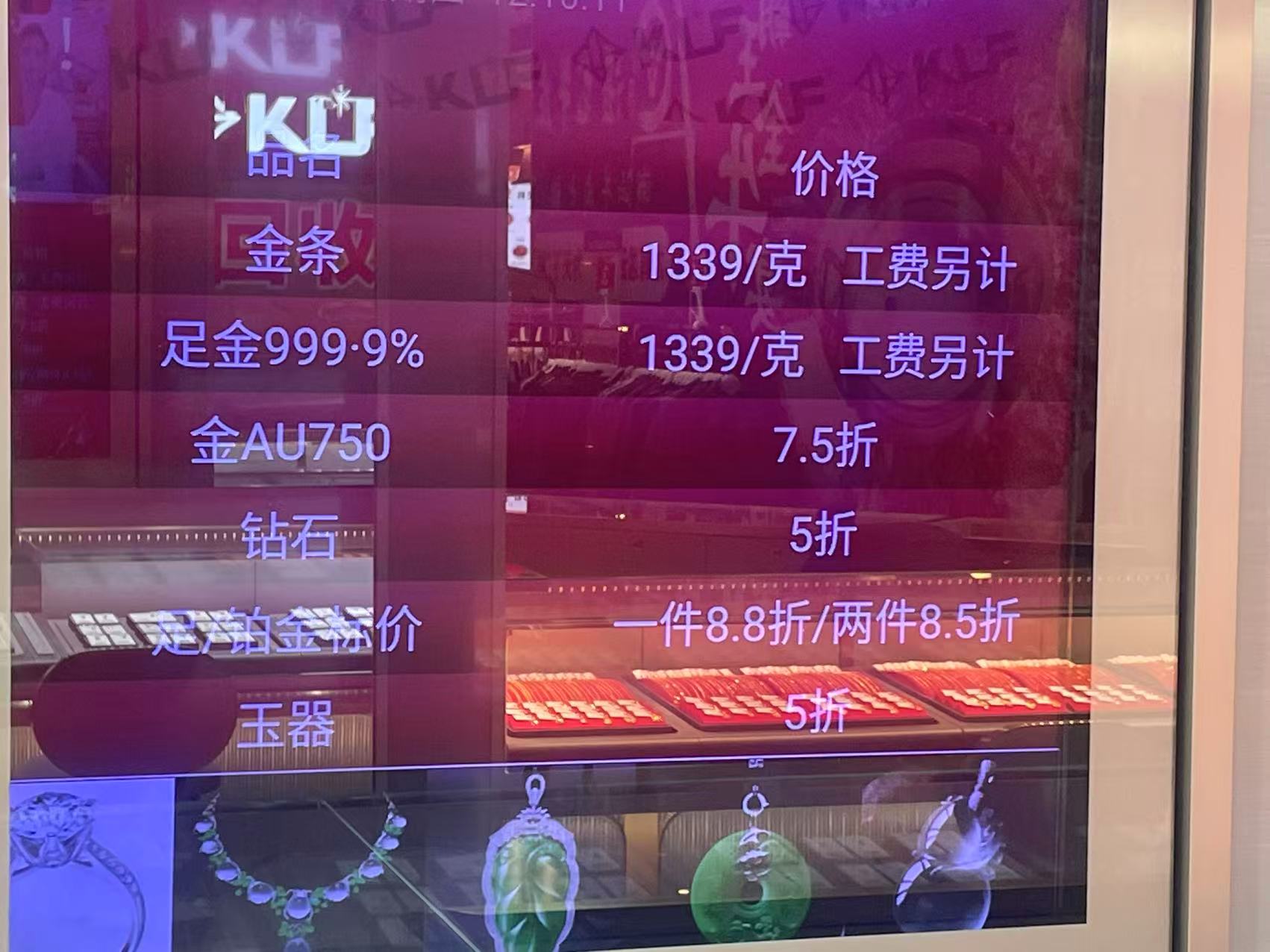 黄金首饰价格方面,2月2日,记者在深圳市福田区某金店看到,黄金饰品价格已跌至1339元/克,比前一日,下跌超100元。