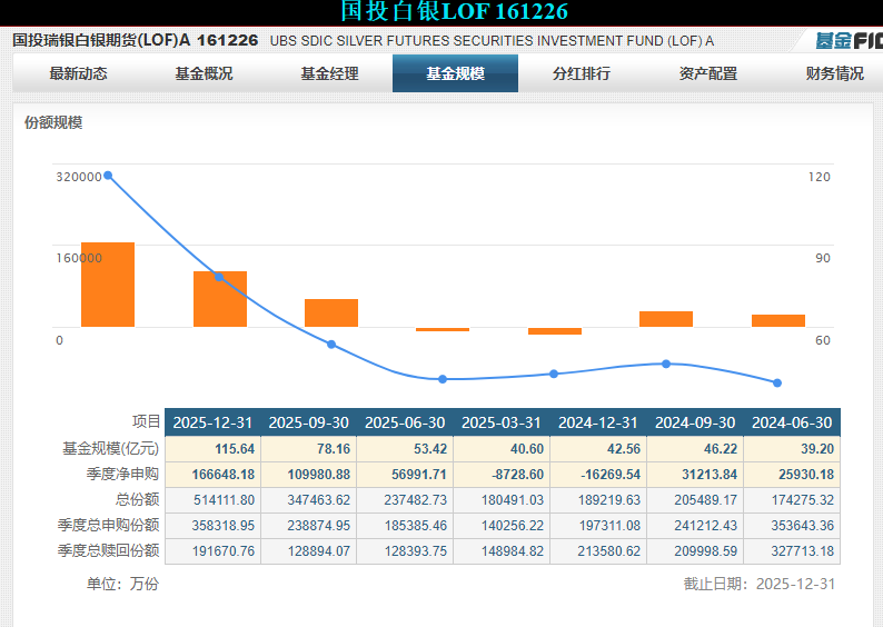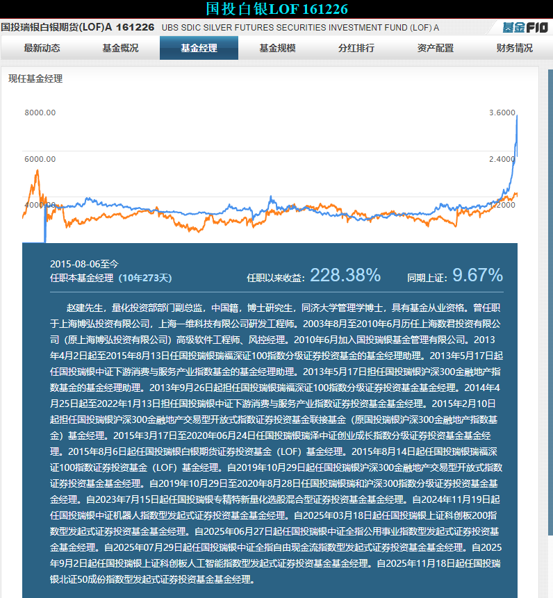 据悉,国投瑞银白银期货LOF(交易代码:161226)是国内唯一跟踪白银期货的公募基金,主要投资于上海期货交易所(上期所)挂牌交易的白银期货合约,其净值波动与白银价格走势高度绑定。2月2日晚间更新的数据显示,该基金A类份额单位净值从前一交易日的3.2838元骤降至2.2494元,单日跌幅达31.5%,远超同期上期所白银期货合约17%的跌停幅度,成为公募行业史上单日跌幅最惊人的产品之一。