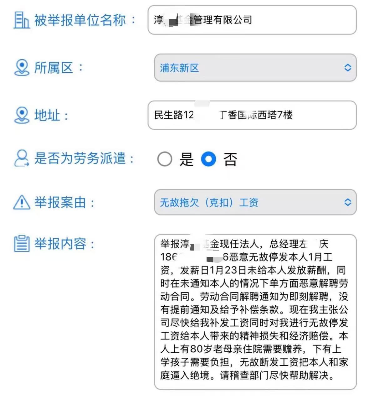 记者在某社交网站看到自称淳厚基金员工的网友爆料称,自己今年1月份的薪水被无故停发,且被单方面解聘,公司未提前通知及给予补偿条款。该员工就此举报公司现任总经理。