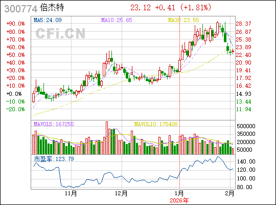 公司最新动态方面,1月20日,倍杰特发布公告,持有公司61,035,422股(占公司总股本比例14.93%)的实际控制人之一、公司董事、总经理张建飞计划在本公告披露之日起十五个交易日后的三个月内(2026年2月10日至2026年5月9日),以集中竞价方式和大宗交易方式减持本公司股份不超过12,262,909股,占公司总股本比例3%。