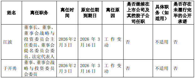 江波、于开勇两人的原定任期至2026年3月16日。