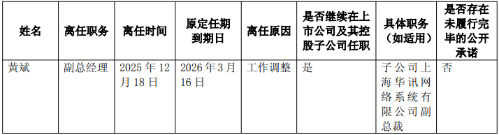 2025年12月20日,电科数字公告,公司董事会于近日收到公司副总经理黄斌的书面辞职报告,黄斌因工作调整原因申请辞去公司副总经理职务。截至本公告披露日,黄斌持有公司股份75,156股。