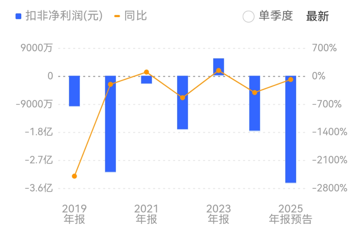 财报显示,2025年前三季度,公司营业收入为26.2亿元,同比下降25.4%;归母净利润亏损1.07亿元,同比下降1502.1%。据计算,公司第四季度归母净利润亏损额达1.73亿元至2.73亿元。