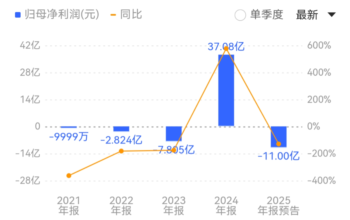 然而,四天后,百利天恒发布了业绩预告,公司2025年归母净利润预计为-11亿元左右,同比降幅约129.67%,明显大于中信证券的预测亏损值;预计营业收入为25亿元左右,同比减少约57.06%。