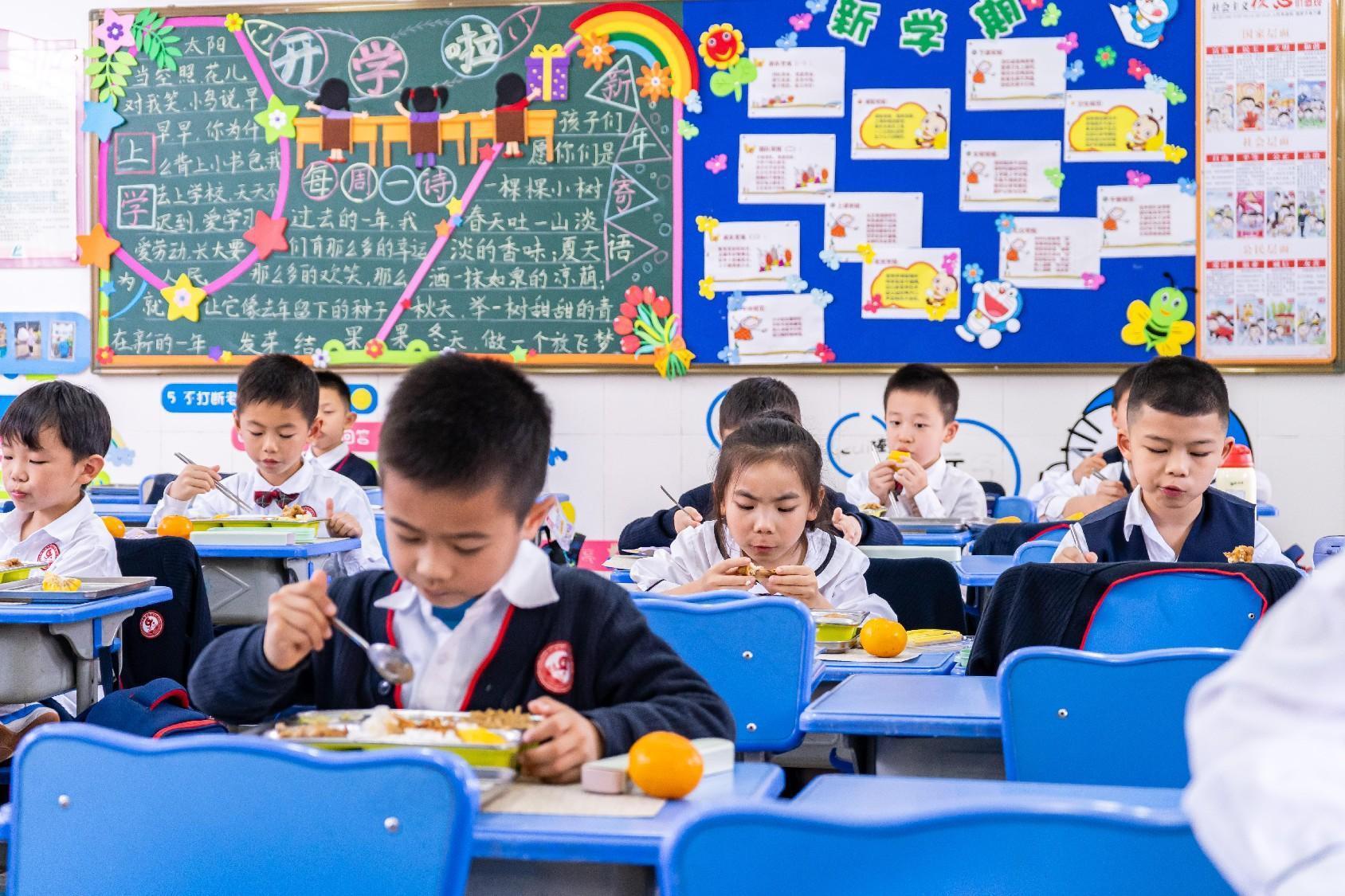 校园课间,学子捧着营养餐补充能量