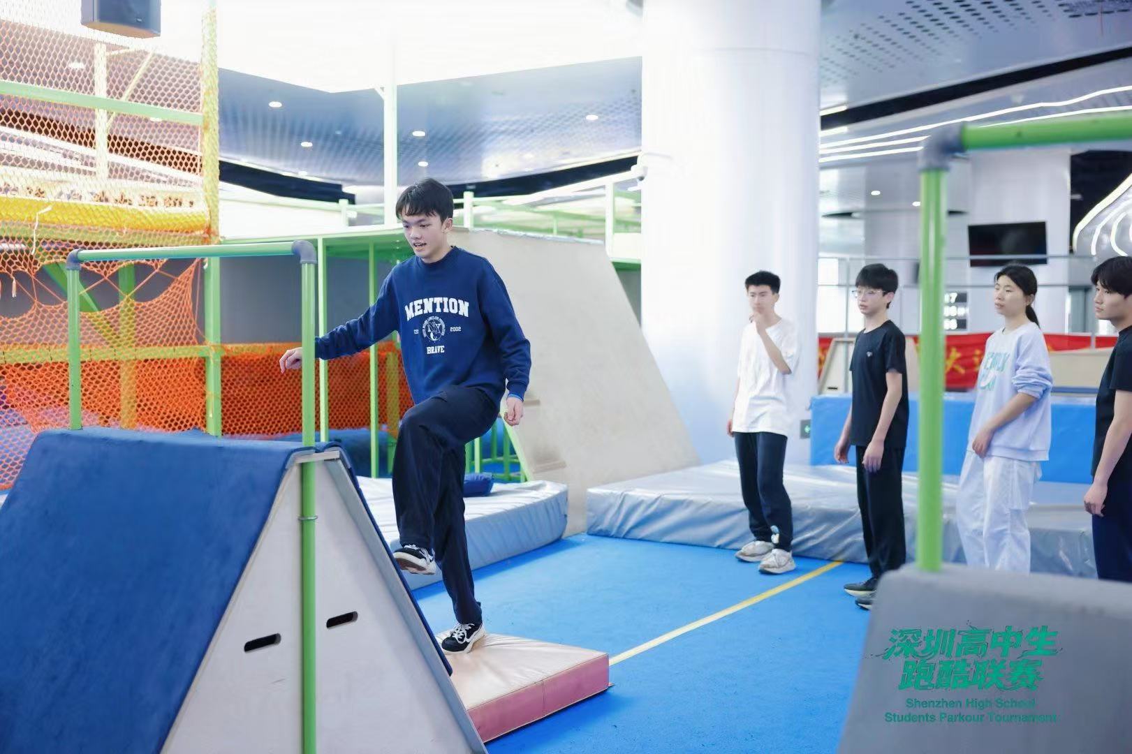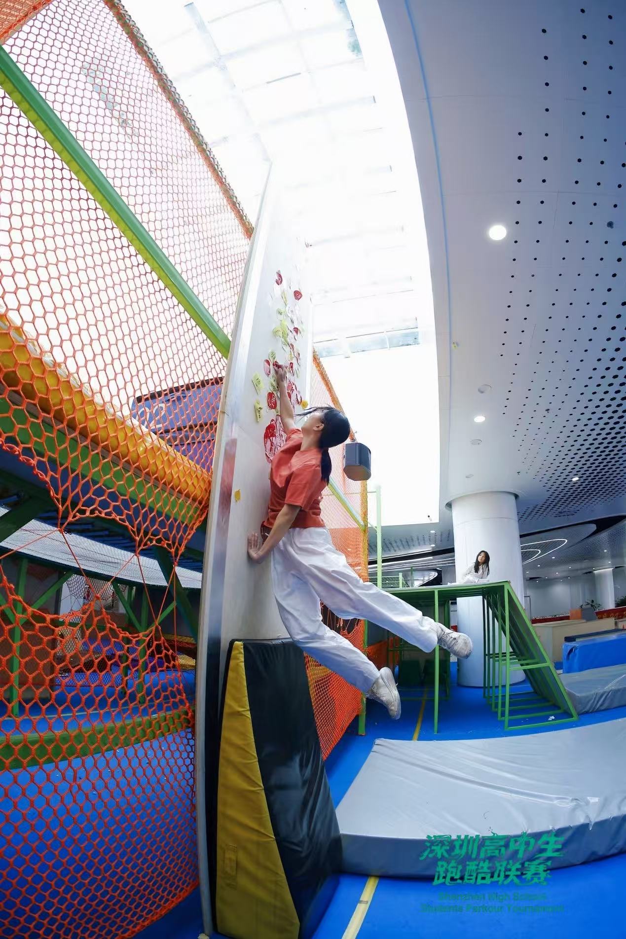 深圳高中生跑酷联赛设有个人竞速、团体接力竞速、金刚定点、荡杆定点、蹬墙摸高等五大赛项,赛制体系、赛道标准、执裁准则均参照国际体联青少年跑酷比赛标准,来自深圳各区的男女高中生们全情投入、享受比赛,赛出风格赛出水平。赛事现场同时开展跑酷公益教学、跑酷文化分享等丰富活动,吸引了不少刚放寒假的深圳学子到场。