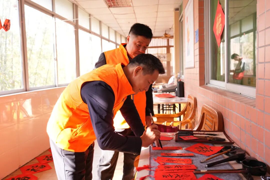 红纸铺展,墨香四溢。圆梦活动当天,书法志愿者挥毫泼墨,一副副吉祥春联、一个个饱满的“福”字跃然纸上。志愿者们捧着刚写好的福字,挨家挨户为长者贴在房门上,红底黑字的福韵,把新春的喜庆铺满庭院。