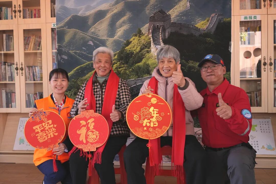 红彤彤的围巾,是冬日里最暖心的色彩。志愿者们走到每位长者身边,为他们围上围巾,指尖的温度伴着暖心的话语,让暖意漫到心底。“你们总想着我们,比亲人还贴心!” 傅阿姨摸着柔软的围巾,手里还在翻看刚刚和长城的合影,眼里满是感动,脸上的笑容与中国红相映,成了院里最温暖的风景。