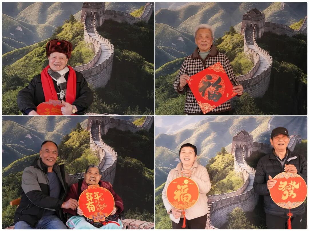 长城,是许多长者心底深藏的向往。囿于年岁与出行不便,登上长城看看祖国的大好河山,成了他们念叨了许久却未能实现的心愿。得知这次能在寿星院里 “登上” 长城拍照,老人们个个满心欢喜,有的互相念叨着要整理好衣衫拍得精神些,有的拉着同伴讨论着拍照的姿势,眉眼间满是藏不住的憧憬与期待。