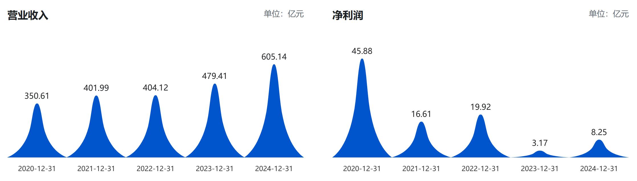 2024年成为公司业绩回升的拐点,全年实现营收605.14亿元,同比增长26.23%,归母净利润8.25亿元,同比激增160.36%,扣非归母净利润6.75亿元,同比增长240.13%,经营现金流也同步改善。