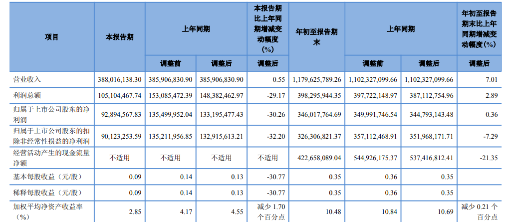 业绩方面,2025年前三季度,公司实现营业收入11.80亿元,同比增长7.01%;归母净利润为3.46亿元,同比增长0.36%。但第三季度,公司归母净利润为9289.46万元,同比下滑30.26%。
