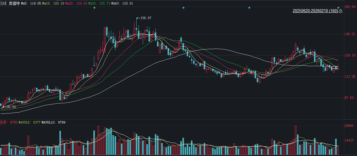 二级市场上,截至2月10日收盘,奥普特上涨1.49%报120.10元/股,总市值约146.80亿元,近一年来公司股价累计上涨超三成。