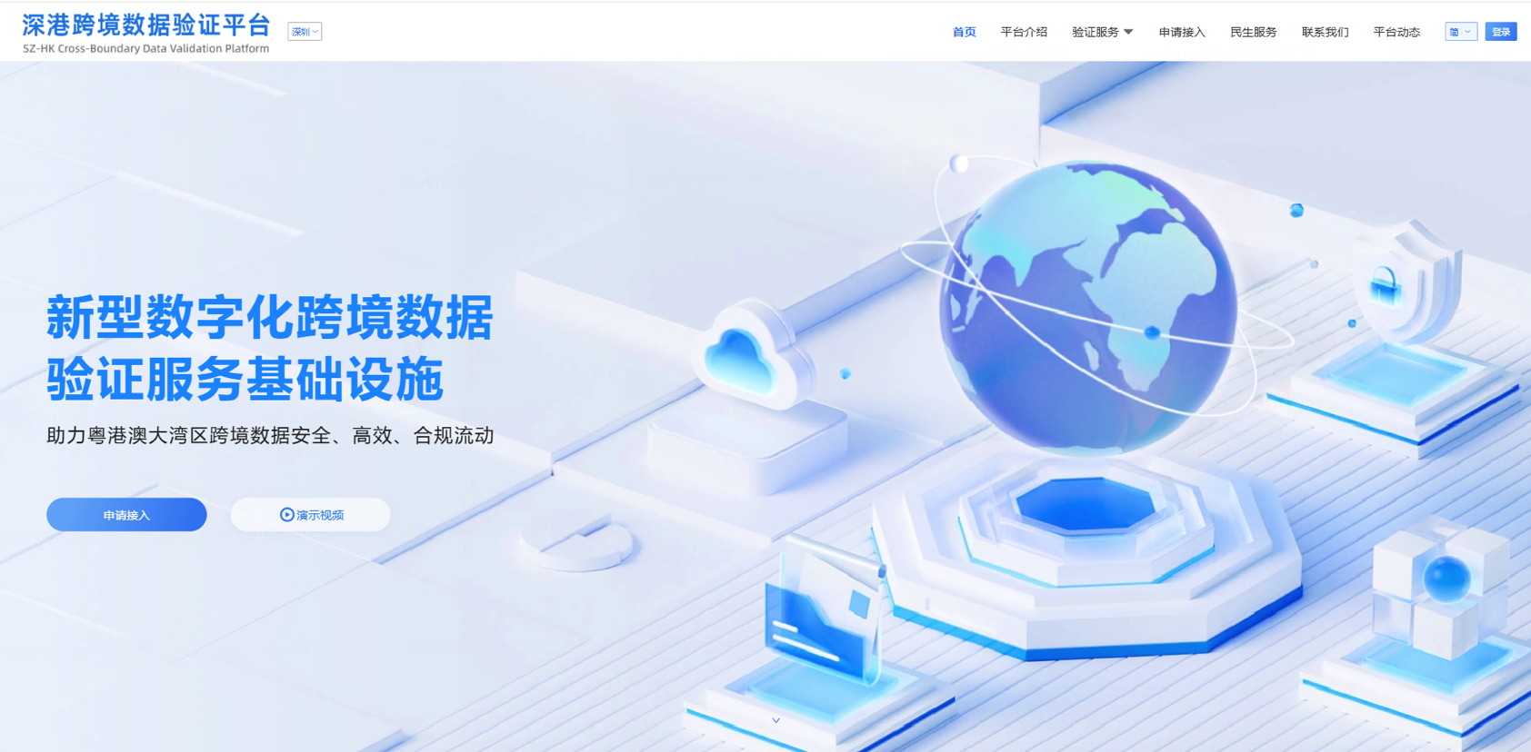 2024年5月,在深圳市互联网信息办公室、深圳市港澳办、深圳市地方金融管理局、深圳市前海管理局、中国人民银行深圳市分行、国家金融监督管理总局深圳监管局、香港金融管理局等部门的共同指导和支持下,深港跨境数据验证平台正式上线试运行。平台由国家(深圳·前海)新型互联网交换中心、深智城(深圳征信)作为深圳侧平台运营方,微众科技香港有限公司作为香港侧运营方,百行征信有限公司作为首发场景机构,微众银行作为总体方案设计及技术支持方共同研究打造。