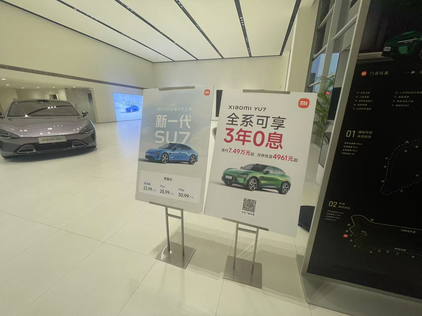 记者发现,新能源车25万元以上的中高端品牌车型在春节期间反而降价比较少,比亚迪仰望、沃尔沃的销售人员告诉,春节期间没有特别的优惠。小米汽车销售人员表示,小米YU7在售,目前仅推出了3年0利息的金融优惠。