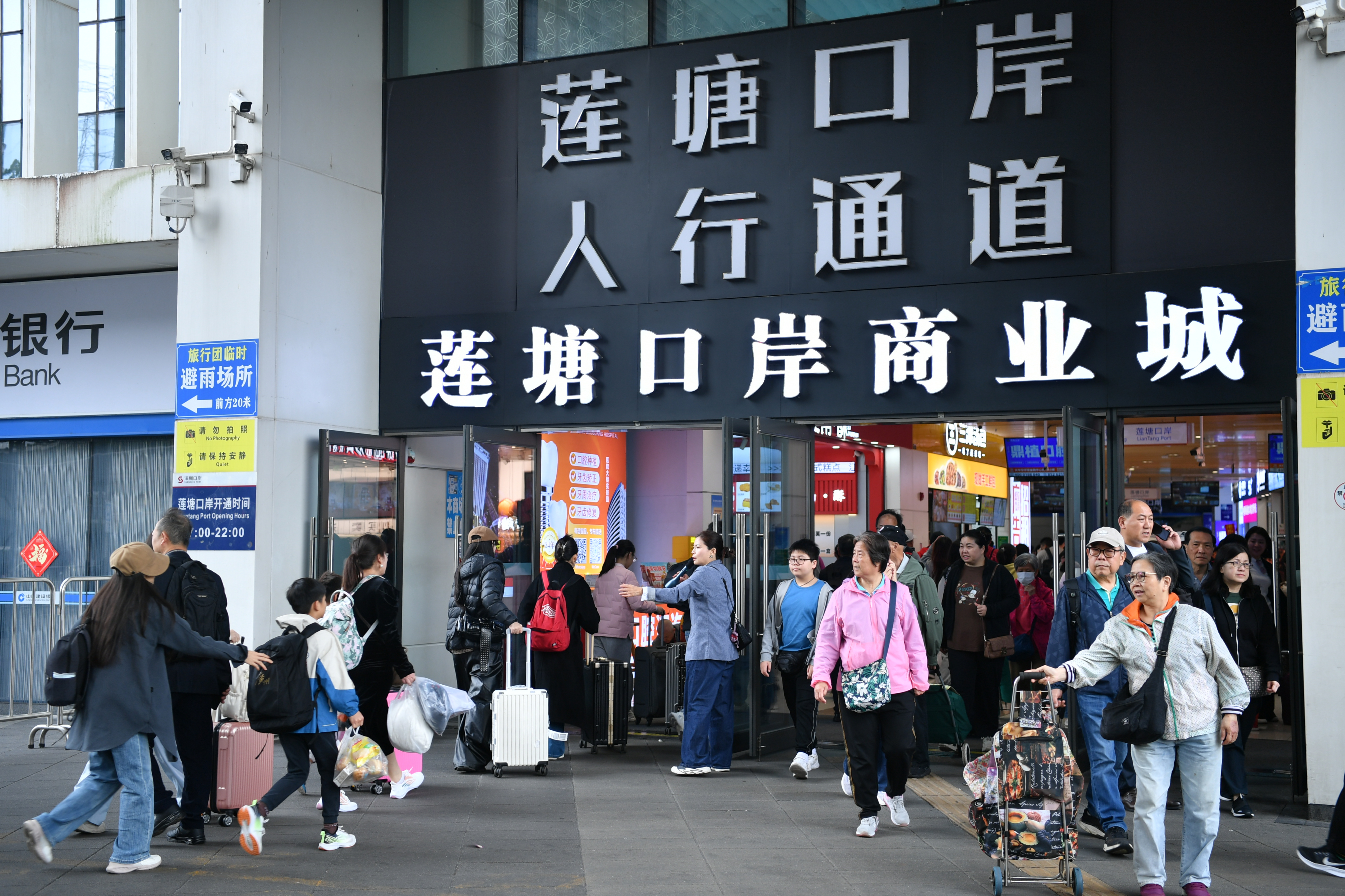 作为深港东部的重要连接枢纽,莲塘口岸近日迎来出入境客流高峰。据深圳边检总站统计,上周末(1月31日、2月1日),莲塘口岸单日出入境人员查验量连续两日走高,分别达11.7万人次与11.8万人次,并再次刷新口岸开通以来单日最高客流纪录。其中,客流群体以探亲访友、举家出游、采购年货的深港居民为主,周末时段客流尤为密集,出入境高峰时段集中在9时至13时、16时至21时。口岸现场繁忙而有序,涌动着一片温馨热闹的新春景象。