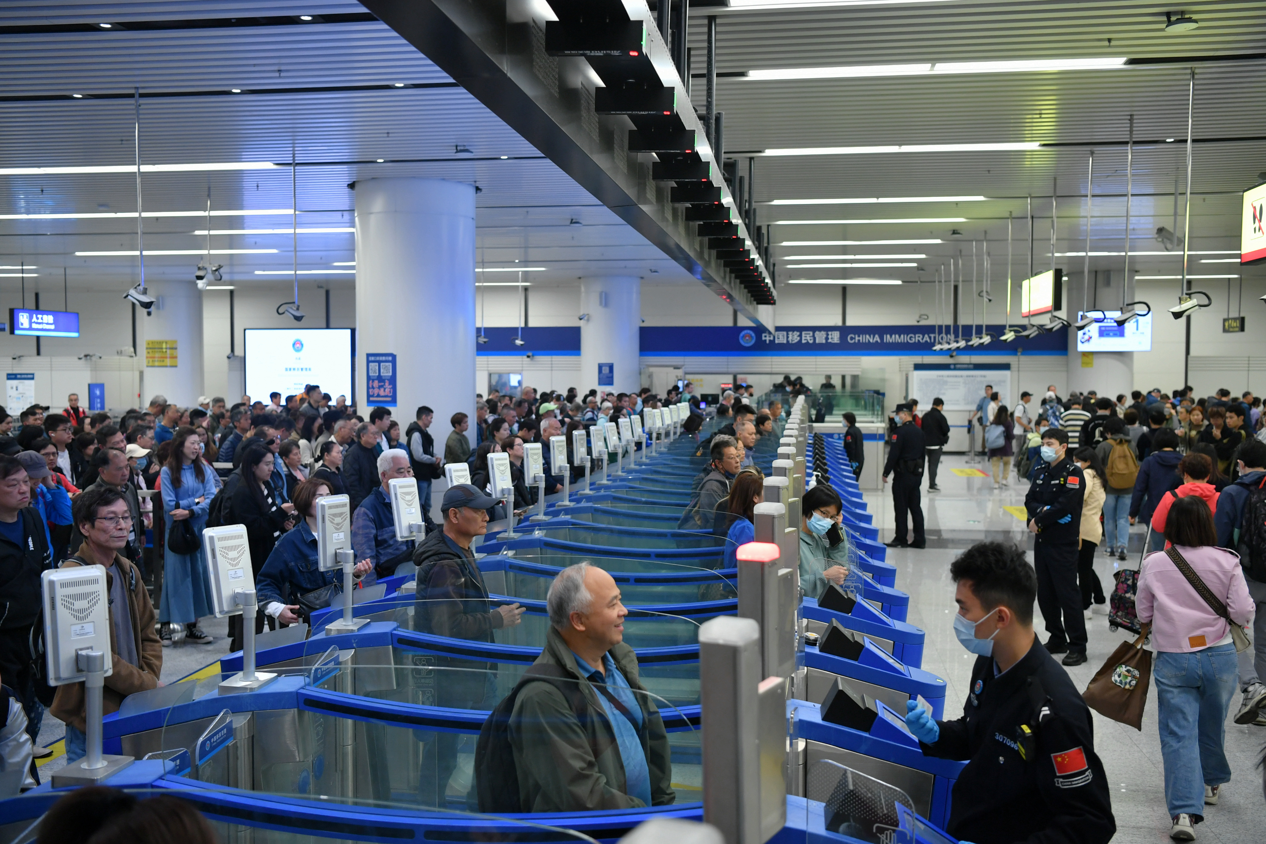 为有效应对春节与周末客流高峰叠加带来的双重压力,莲塘边检站依托前置预警机制,及时掌握大型团组信息,动态调配警力,灵活启用“平急两用”人工通道、移动查验台等设施,有效提升通关疏导效率。